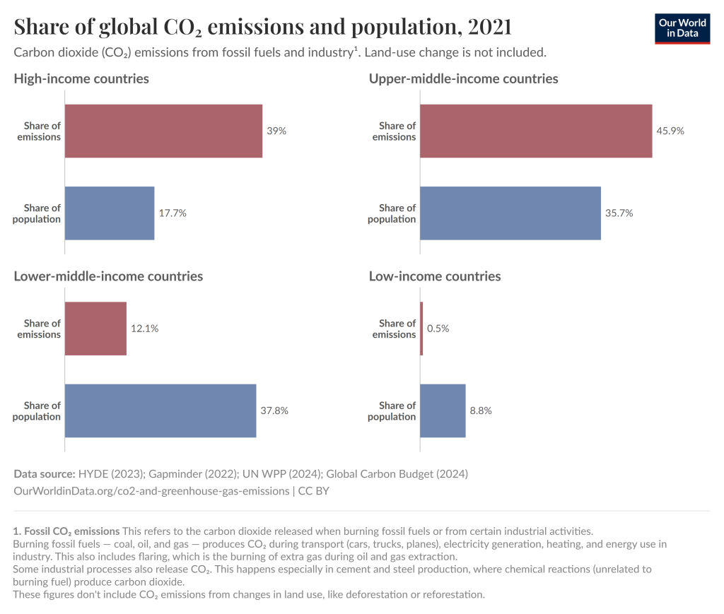 This disparity matters not merely for ethical reasons, but because ignoring it produces unworkable strategies. When climate action plans call for ‘the world’ to retire coal plants, reduce consumption, or shift to electric vehicles, they implicitly demand equal sacrifice from profoundly unequal actors. To put that in perspective, an average American or Australian emits as much CO2 in a month as an individual in Africa does in a year. More than 600 million Africans lack electricity access entirely. They have no coal infrastructure to retire, no private vehicles to electrify, and consumption levels already orders of magnitude below what’s required to meet basic needs.